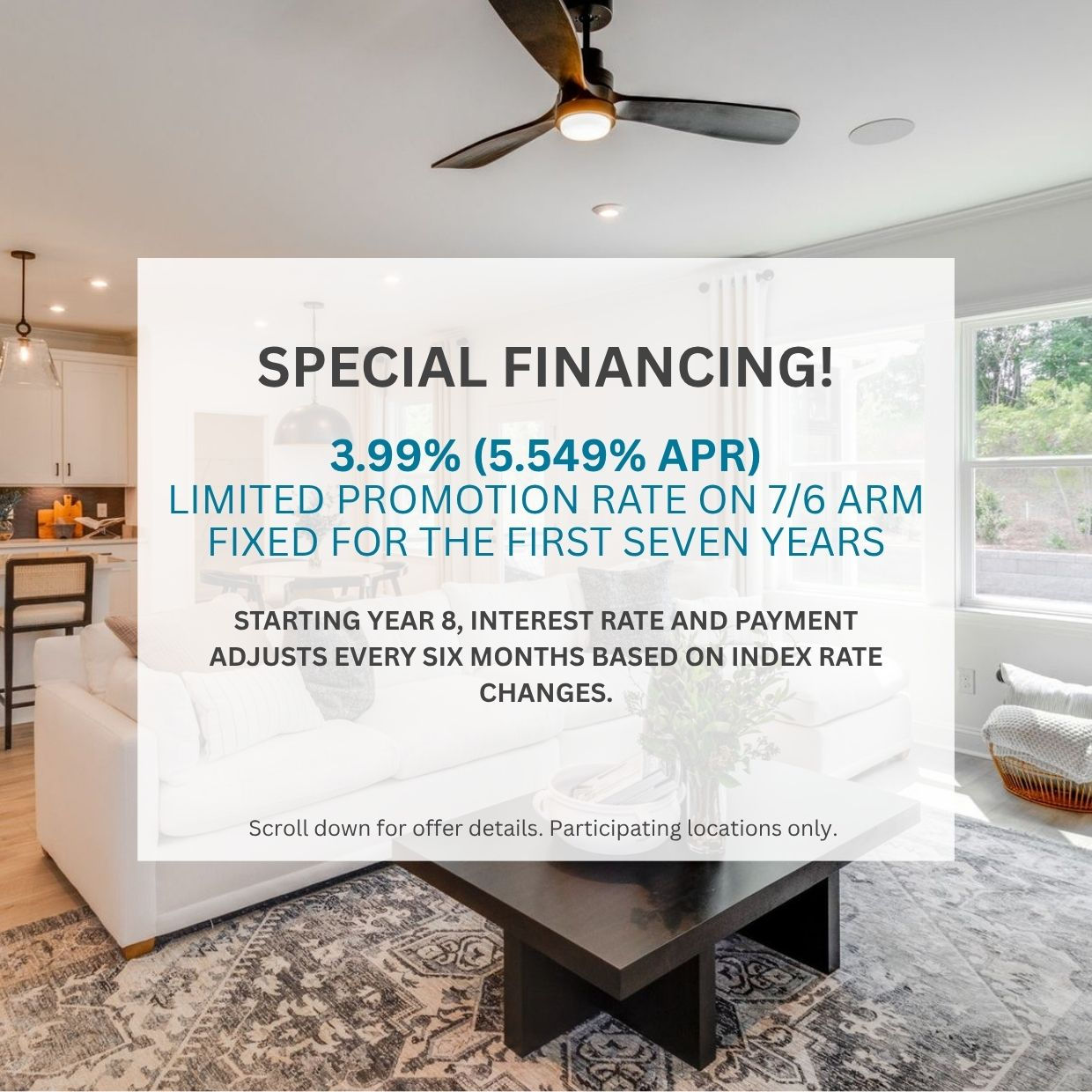 Nobody knows Del Webb’s processes like us. Because of that, we provide customers with a streamlined, simple lending experience that’s tailored to your financial situation. Speak with a Sales Consultant for more details.