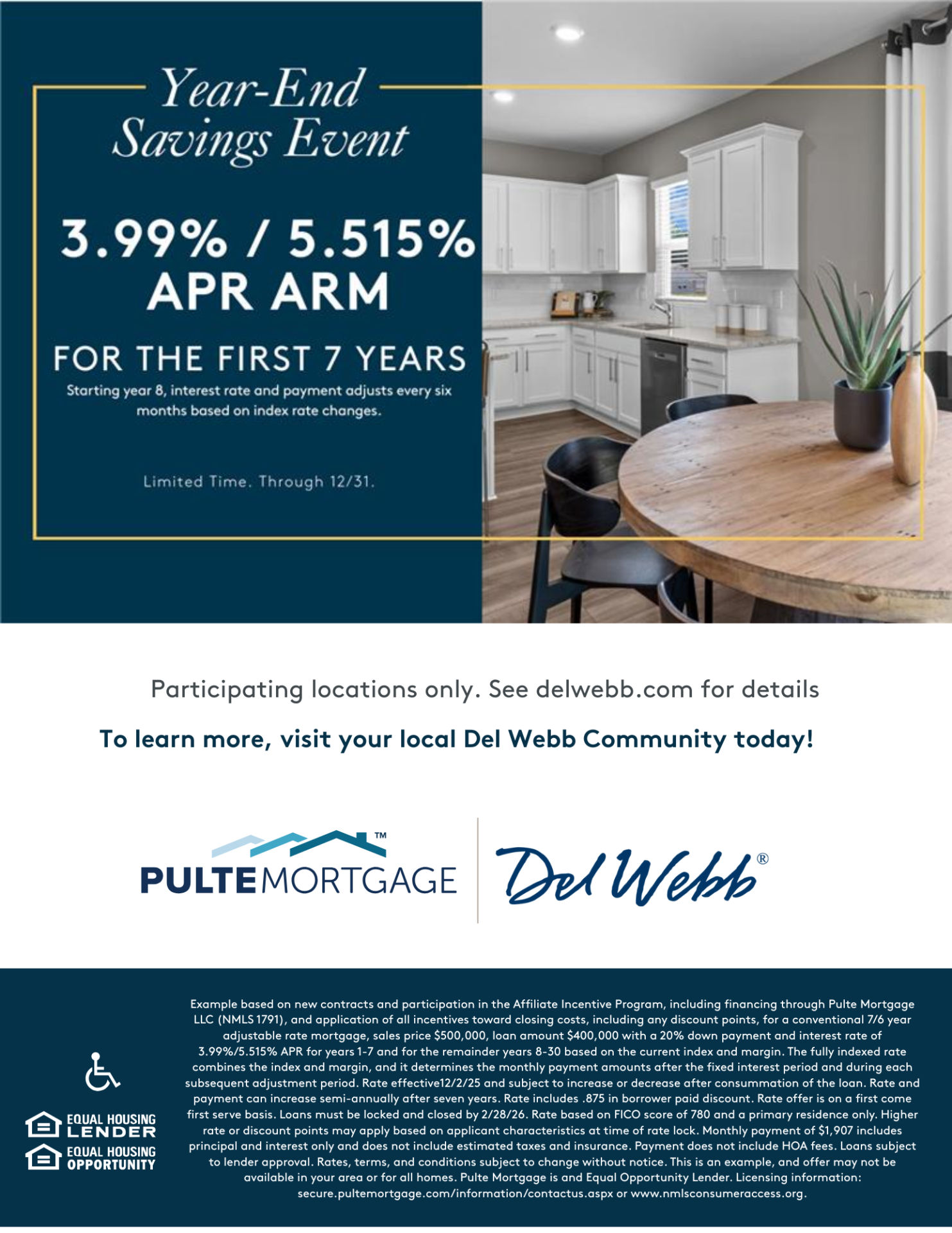Nobody knows Del Webb’s processes like us. We provide customers with a streamlined, simple lending experience that’s tailored to your financial situation. Speak with an Advisor today.
